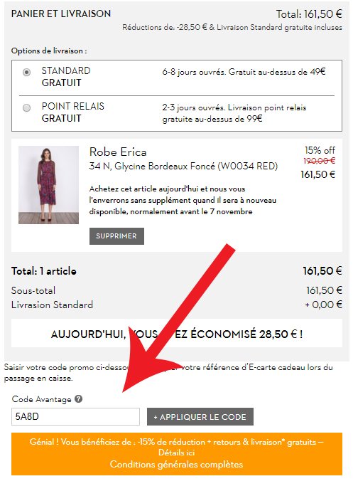 Ils vous manquent x pour bénéficier de l'envoi standard à domicile gratuit.